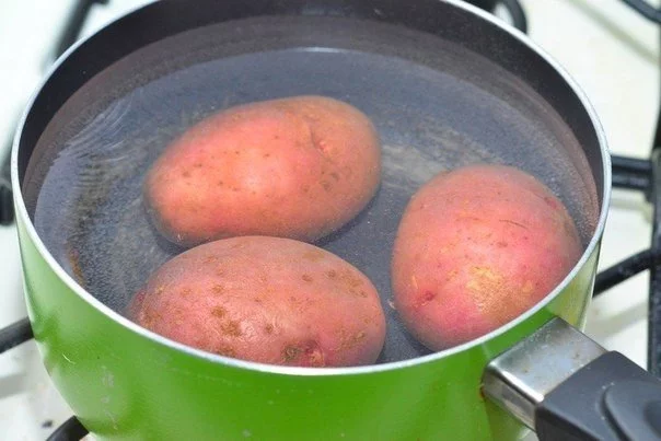 Картофель отварить в мундире до готовности.