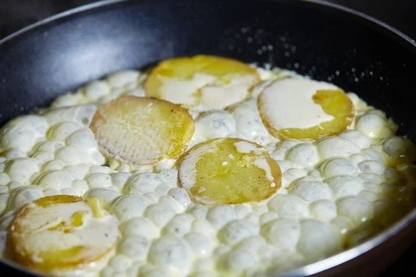 На другой сковородке обжарить с обеих сторон картофель.