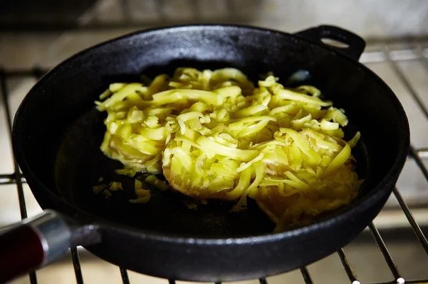 Посыпать картофель тертым сыром и отправить запекаться в духовке до золотистой корочки.
