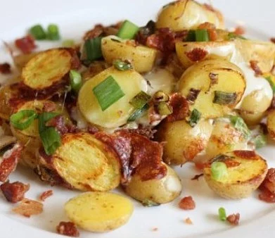 Именно потому, что в этом блюде используется молодой и довольно мелкий картофель, оно такое привлекательное, аппетитное и очень вкусное. Это блюдо, если у вас, конечно, есть большое желание, вы можете украсить свежей душистой зеленью петрушки или укропа.