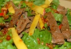Манго – это очень вкусный, сладкий и ароматный фрукт, в составе которого большое количество витаминов. Из него можно приготовить разные блюда. Одно из них – Азиатский салат. Для его приготовления потребуется: одна маленькая луковица, долька чеснока, имбирь, четыре грудки куриные без костей и кожицы, оливкового масла четыре столовые ложки, по одной чайной ложки, зиры, молотого кориандра, смеси специй, неострого порошка чили и куркумы по половине чайной ложки, 150 грамм листиков салата, один перец красный, одно манго, столовая ложка нарубленной свежей кинзы, сок с половины лимона.
