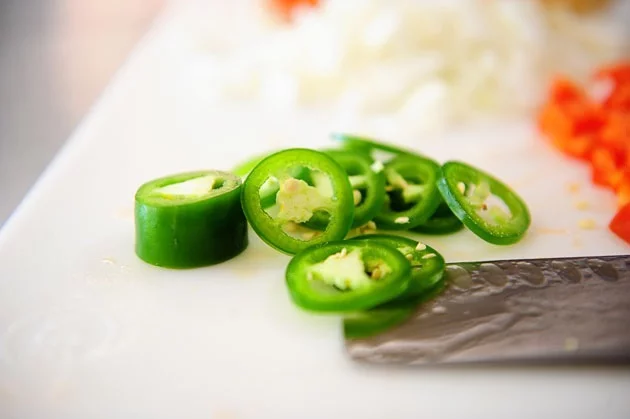 Кружочками нарежьте острый перец.