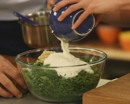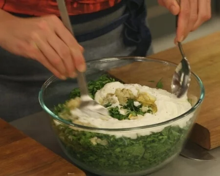 легкого салата со шпинатом и йогуртом. Салат со свежим вкусом и цветом. Рецепт