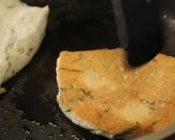 В сковороде нагреть небольшое количество масла и выложить жирную белковую смесь, как блины. После появления золотистого цвета, переверните на другую сторону. Должно получится 4 таких блина.