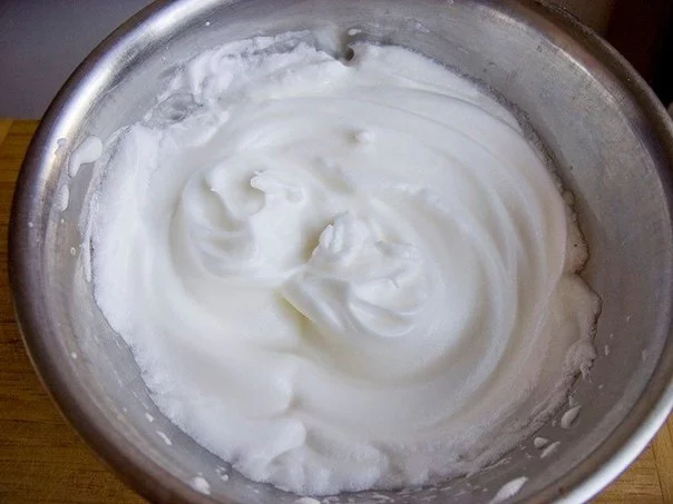 Белки взбиваем при помощи блендера или миксера до крепкой пены.